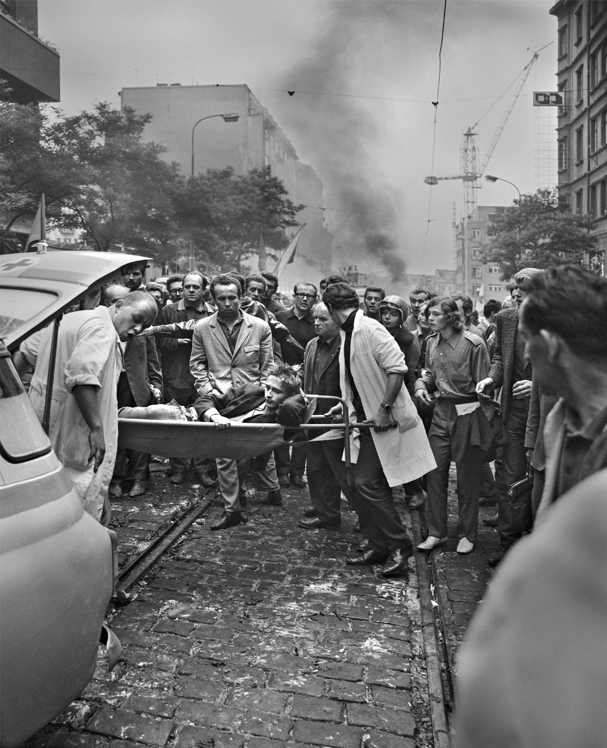 • „Když jsem v srpnu 1969 fotil, tak se to dalo jen velice špatně, protože vojáci a Veřejná bezpečnost přehradili ulice. Takže se dalo fotografovat třeba jen z tramvaje. Domluvil jsem se s tramvajákem a on mi otevřel okýnko a přes to jsem fotil. Potom jsme stáli tam pod rampou a začala se zpívat hymna. V tu ránu na nás vlítli. Byla tam velká řežba. Když do vás mlátí a stříkají slzný plyn, tak to není vůbec dobrý. Navíc jsem měl ještě v kapse malý foťák a filmy. Říkal jsem si: ,A je průšvih.‘ Nahnali nás dohromady a připravili na odvoz antonem. Ti, které odvezli, potom dva až čtrnáct dní vyslýchali. Pořádně jsem neviděl, protože mi tekla červená. A najednou se o mě takhle opírá vysoký chlap a říká: ,Co ty tady děláš?‘ Podíval jsem se na něj a napadlo mě, že by to mohl být můj kamarád z loňska (pozn.: příslušník VB, se kterým se seznámil při fotografování v srpnu 1968). Asi to byl on. Nevím, neručím za to. Jen jsem mu řekl: ,Jdu támhle ke známým, jsem tady náhodou.‘ ,Tak běž!‘ Otočil se a postavil se tak, aby velitel, který nás tam komandýroval a buzeroval, neviděl, že mizím. Ještě s jedním jsme stihli přejít ulici. Ostatní odvezli. Vběhnul jsem do prvního baráku, kde mě nechali umýt. Protože když někdo šel po ulici a byl od krve nebo jinak podezřelý, tak ho policajti taky sebrali. Domů jsem došel už umytý a hned jsem začal vyvolávat filmy. Tak to byl rok 1969.“