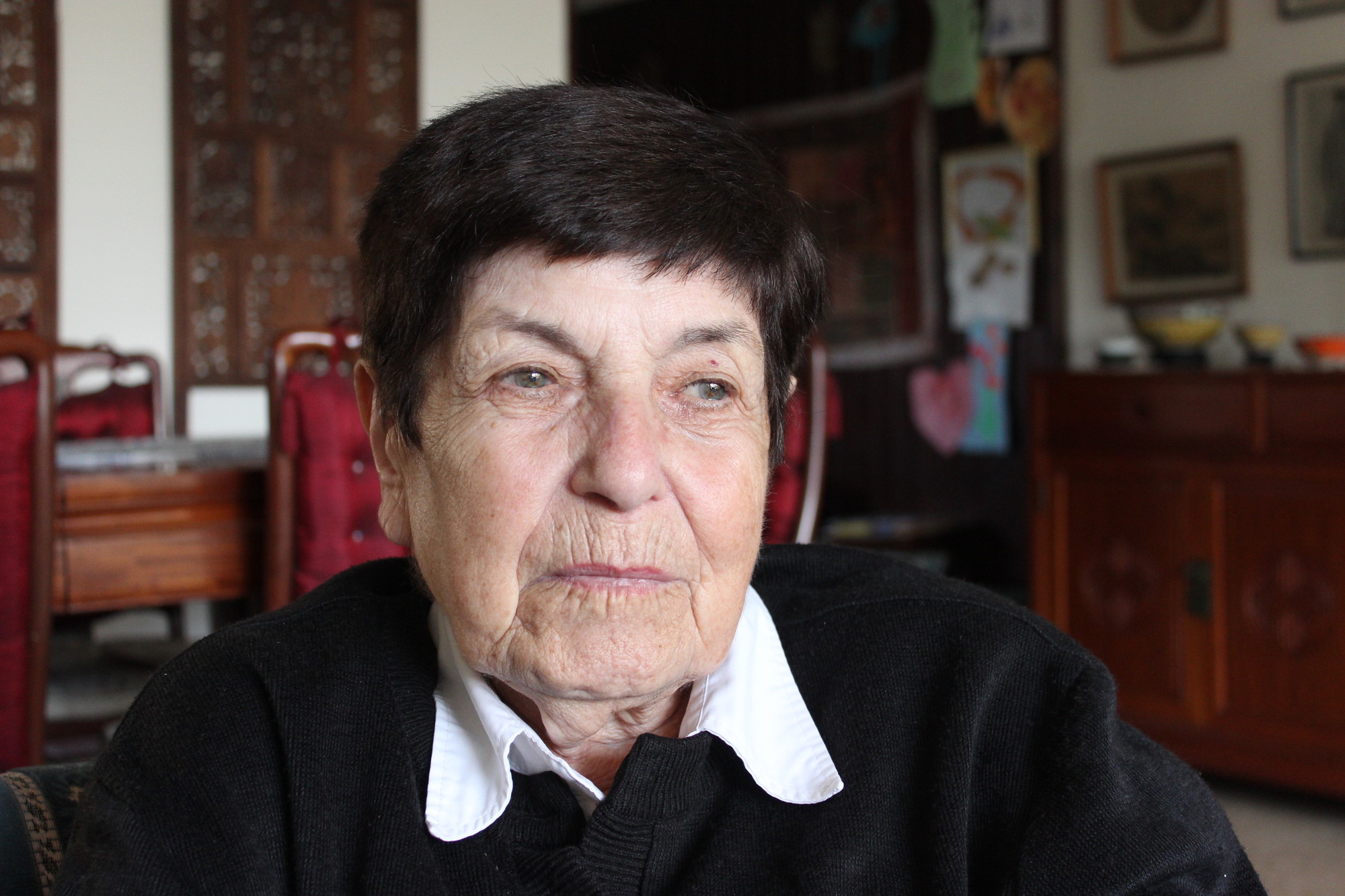 „Když my jsme přišly do Osvětimi, my jsme byly v „rodinném táboře“, tak už tam byl transport, který z Terezína odešel v prosinci. My jsme byly květnový transport, oni prosincový. Mezi nimi jsem měla přítelkyně, s kterými jsem i bydlela na pokoji. Najednou já vidím komíny a podle mého názoru, byla jsem třináct čtrnáct let stará, ty komíny byly továrny. Já jsem znala továrny, které mají komíny. Ty děvčata, co tam byly od prosince, mluvily jasně. Že je to plyn, že tam pálí lidi, že půjdou za šest měsíců jako ten transport předtím a my půjdeme potom. Nevěděla jsem, o čem mluví. Nejenže jsem nevěděla, o čem mluví, ale říkala jsem: Mně se to nemůže stát. Tahle válka nemůže být proti nám tak dlouho, my jsme nic neudělali, proto každý den jsem čekala, že ta válka skončí.“