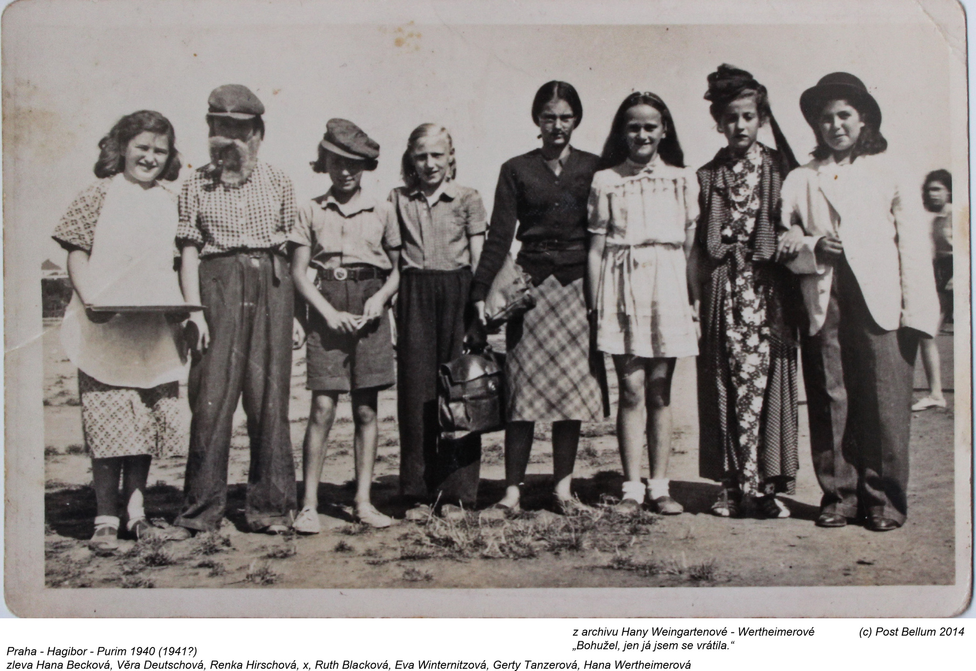 „Já jsem se skamarádila s těmi dětmi, tam bylo hnutí Tchelet lavan, kam jsme chodili. Moje sestra mě tam vzala a kamarádi... Já vím, že jsme si tam hráli s plastelínou. Věděla jsem něco o Palestině, že je to velmi zajímavá zem a tak dále, to vlastně bylo sionistické hnutí, ale já jsem byla moc malá, abych tenkrát pochopila, co to je. Ale chodila jsem taky tenkrát na tělocvik do Makabi. Měli jsme Makabi, dvakrát do týdne jsme tam chodili cvičit. A bylo to moc fajn. Kamarádili jsme se mezi sebou.“