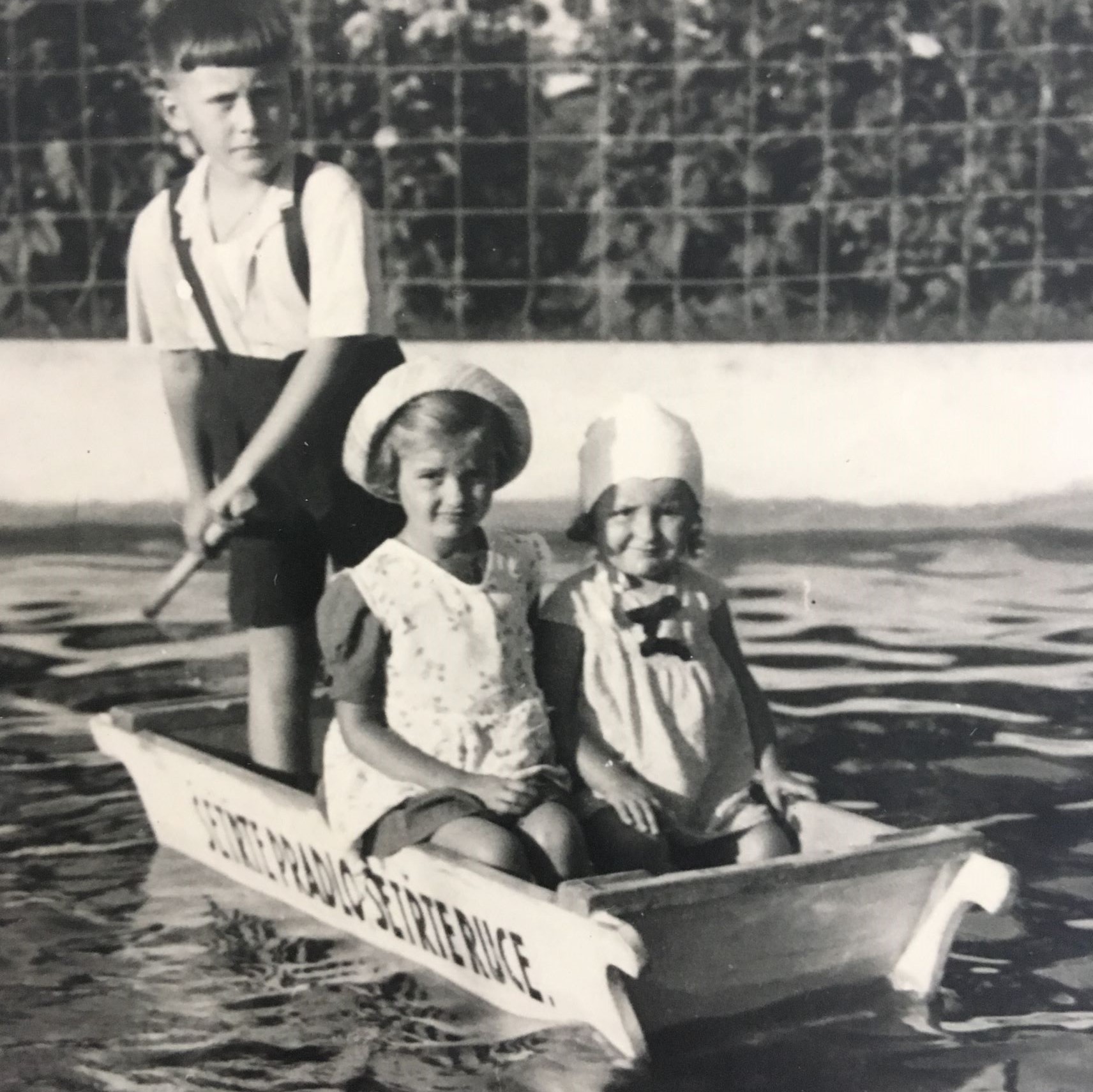 Smíšený dětský sbor před válkou – Adéla Bartoňová 2. řada od spodu, první dívka vlevo (bílé šaty, kostkovaná košile), Květoslava Bartoňová ve stejném oděvu třetí dívka v téže řadě