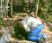 „Báseň Mžení: ‚Mží. Kněz v komži slouží mši. V kostele omšelém hlas šelem neuslyšíš. Venku mží do louží. V kaluži nebe dnes neuvidíš. V kostele omšelém láska mží do duší.‘ Tahle báseň mě napadla, když jsme jednou šli na vandru kdysi dávno. Bylo to na Velikonoce. Na Velký pátek jsme vlezli do katolického kostela ve Žluticích. Mladý kněz tam sloužil úplně sám, tam nebyla noha. My jsme tam přišli, tři vandráci a on nám říkal: ‚Vy jste mně zachránili Velikonoce.‘ Ale sloužil prostě. To bylo ještě za komunistů.“