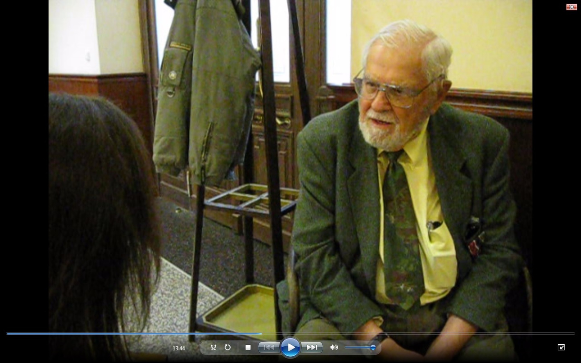 “I joined 2nd infantry division during the Battle of the Bulge in Belgium. We were done across the Rhine and eventually we captured Leipzig, and then were around Mulde river, and the Russians at the other side, they were not friendly. Suddenly then, we were put on a truck and headed south towards the border of Sudeten and then Czechoslovakia. We entered Sudetenland and there were some Germans who were still fighting and in fact one of them was able to knock out one of our tanks and five men got killed, those were the last American soldiers that I saw killed during the war. Several were wounded later but nothing very serious. As we moved through Sudetenland we saw very few people, those that we saw were obviously Germans and they were not happy with our presence. Then we crossed, I learned later it was the border of Sudetenland, marching towards Domažlice. The Czech people were lining the roads waving home-made American flags, flags made from pieces of paper, pieces of cloth, some with paint, some with children crayon markers, and offering us all kind of pastries and beer and cake, and all kinds of good food and we knew that the Czech people were sharing with us the last of their sugar, the last of their flour, the last of their foods so we were grateful.”
