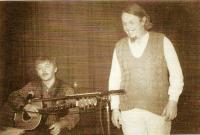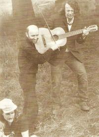 A turning point for Karásek came only with the death of Jan Palach and the Russian occupation. In 1968 he began his service as a pastor in his first post in Hvozdnice. However, after a conflict with the state secretary for church affairs he had to leave the flourishing congregation and he was transferred to Nové Město pod Smrkem. After repeated problems, his state approval for pastoral activity was cancelled. Financial problems followed. He eventually found employment as a castellan on the Houska castle, where he spent several wonderful years with his wife Stáňa and their children. Then he received an invitation to the underground movement, and he has not left this community till his emigration. One of independent communities was established in Houska. Frequent visitors included pastors from the New Orientation, like Miloš Rejchrt, Alfréd Kocáb, or Jan Šimsa. He replaced his sermons to a congregation with biblical lyrics in his songs. Repercussions of these activities came in 1976 when he was arrested. The district court in Prague sentenced him together with Ivan Martin Jirous, Pavel Zajíček, and Vratislav Brabenec to eight months of unsuspended sentence for riotous conduct. A wave of solidarity followed the trial and at the turn of 1976-1977 it materialized in the founding of Charter 77, which he signed with the first wave of signatories in Ječná Street in the flat of the Němcová family. This year also marked the beginning of his new career as a window-washer.