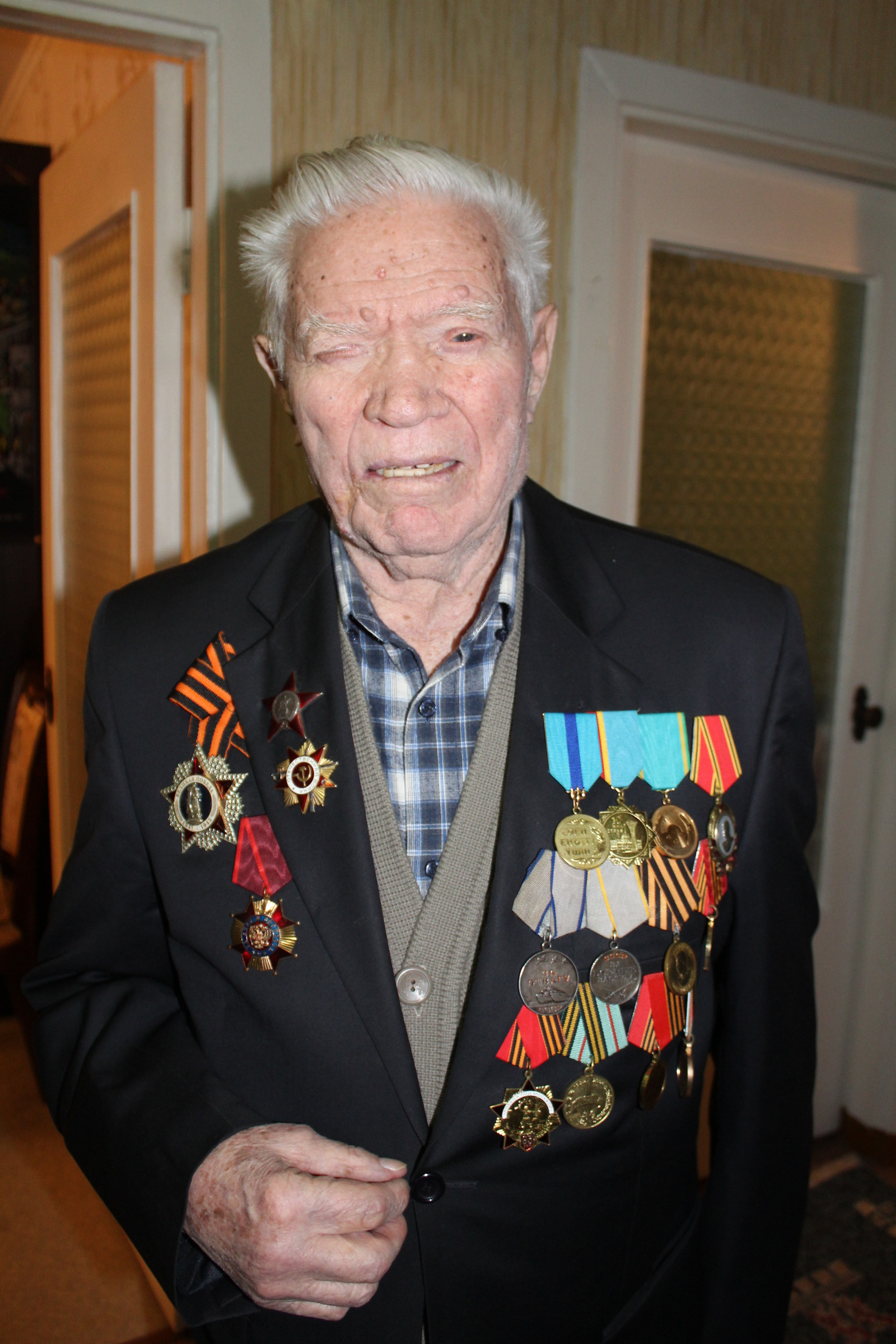 Alexander Jegorovič Kolesnikov was born in 1923 in the village of Korobelnikovo in Altai Krai, Russia. His parents worked at a kolkhoz. Although they grew some crops on their own ladn as well, they suffered from a lack of food. And so Alexander and his siblings had to gather dock leaves, liquorice roots, and other forest plants, which he claims ensured his good health throughout his life. The war broke out just as he completed primary school. He volunteered to the draft. In autumn 1941 he was sent to Barnaul and then straight to the first line defending Moscow. He spent several months in the trenches there. He was wounded during one attack and taken to a hospital in Moscow. Three months later he was assigned to a tank school in Sverdlovsk (now Yekaterinburg). He underwent lessons in theory and combat training and was sent to the Belarusian front. He was assigned as the commander of a T-34 tank. After liberating a few villages his tank was destroyed and he was put in command of a self-propelled SU-122 howitzer. He and his crew managed to take out an enemy Tiger tank. However, shortly before reaching the German border, his machine was destroyed again and Kolesnikov was heavily injured. He got married after the war, he had four children and worked at a kolkhoz on a tracked tractor until he improved his education by graduating from the Barnaul Polytechnical School.