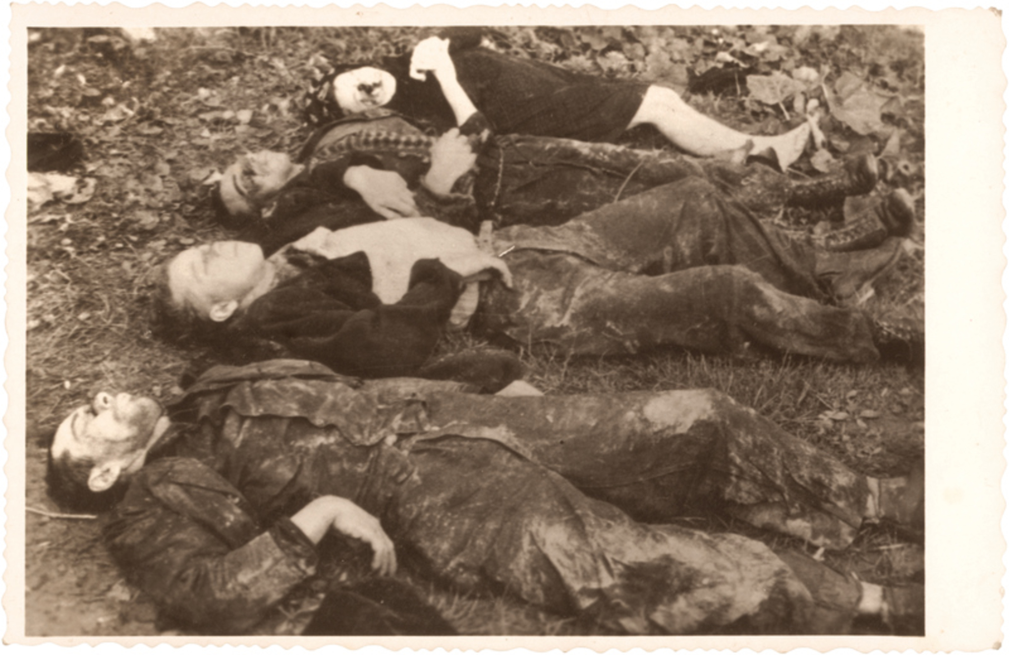 They had to dig graves for themselves, beaten from the Germans, tortured. At the end of it, they had to dig the graves, each one for himself. And by the grave, they shot him, he fell to the hole and the other ones had to cover him up. And when it came to the fourth, it was a girl, twenty two years old, there was nobody to cover her up. So she just stayed as she was.