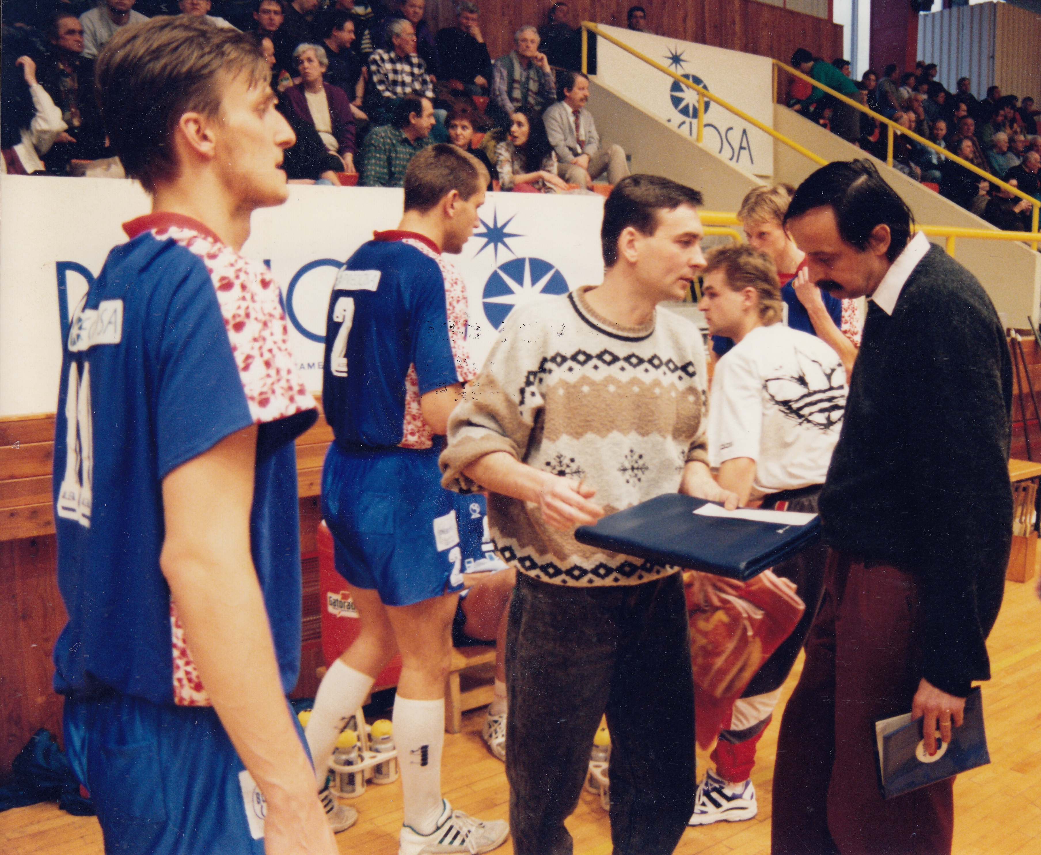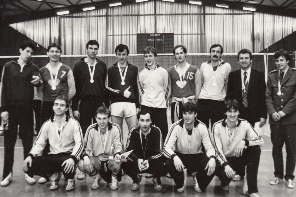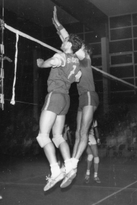 "We had fun; I can't complain thinking back of the early days. When we played in the Sokol gymnasium, it was amazing. The gym was packed, with people gripping the bars from outside looking in. The balcony upstairs was sagging so we were afraid of getting in trouble. Viewers were standing right on the lines. When it was raining, they brought umbrellas upstairs, and as the ball was coming from the opponent, someone knocked it down with an umbrella. Pepík Fiala wanted to run upstairs and punch them in the nose. It had a powerful atmosphere. Then, we played in Korka; it had a low ceiling but it wasn't bad, and then they built a hall."
