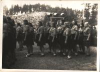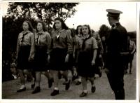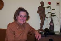 Mrs. Alena Lorencová was born October, 28, 1924 in Chotěboř. Her parents ran a packaging business in Hlinsko; there she learnt the cardboard-maker‘s trade and worked for her parents before the war. During WWII she was doing conscripted labour for the German army in an aircraft engine assembly factory near Náchod. After the war she worked in a textile warehouse as a treasurer in the Jednota grocery store. Since she was from a small trader‘s family, after the communist coup in 1948 she was regarded untrustworthy and was the first one to be dismissed from her job. Her parents‘ business was confiscated by the state. Mrs. Lorencová began working in the factory Electro-Praga, where she first worked in the galvanizing workshop and later transferred to the production line for health reasons, where she remained working till her retirement. As a young girl she was a member of Junák (Czechoslovak Scouting organization - transl.‘s note) and Sokol. She was inspired to become a Scout thanks to her brother whom she had visited at summer camp. She became a leader of a Scout pack before the war. After the restoration of Junák she was the leader of the first postwar camp for Girl Scouts from Hlinsko, which was held in Libchavy near Ústí nad Orlicí in 1945. She married shortly after and started a family.