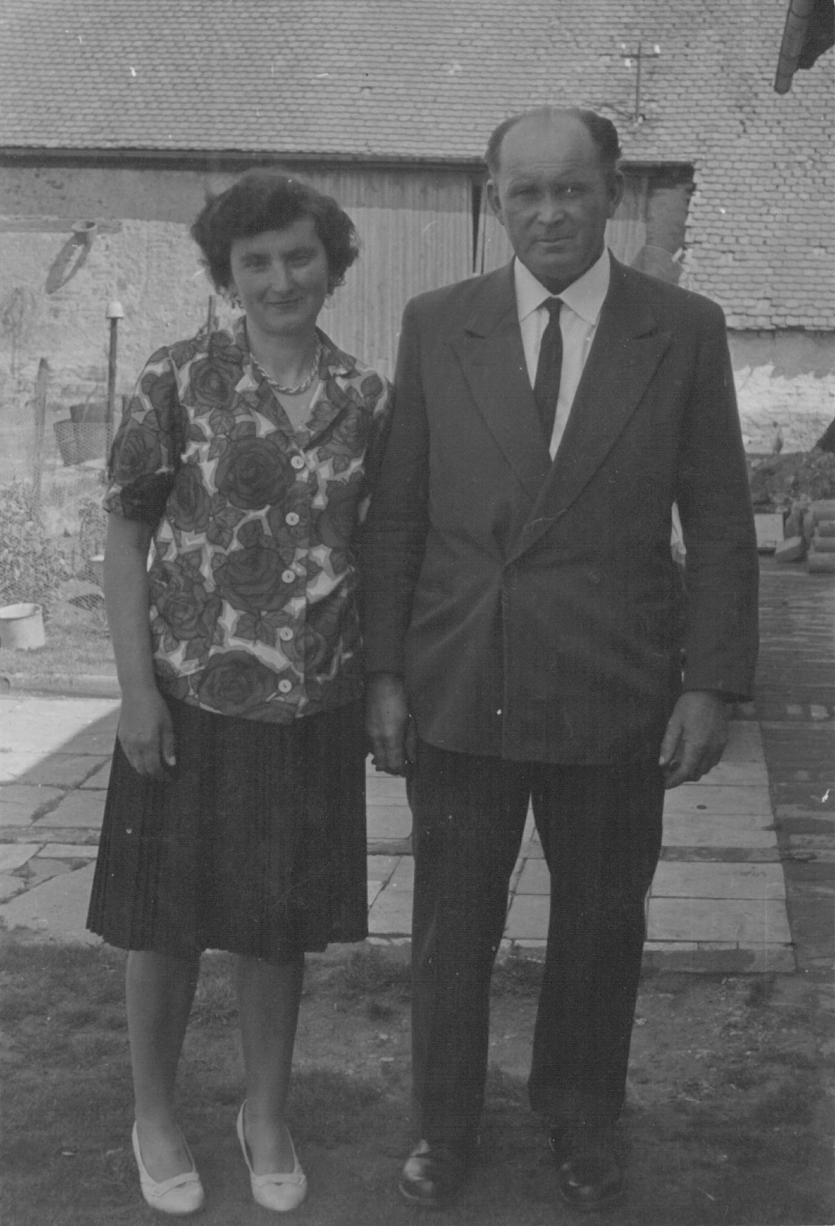 “It was during the war. There were air raids just around the time he was born. I always had to grab him and rush off to hide. We had air raids here when Pepek was born, that was in forty-two... There was a dyke a bit further off, and they made a hole into it where we could hide during air raids... I always took Pepek, wrapped him up in a blanket, and hurried off on foot all the way over there... and then I’d sit down. There were some women there, two or three of us, and waited to see what would happen. Because we could hear the air raids as they flew overhead. When the weather was good, we could even see them, splendidly, high up in the sky, then they went to Kolín and dropped it there, and it hit a tree and a house all the way up by the graveyard and killed the people there. They were in the cellar, and the house crumbled and crushed them.”