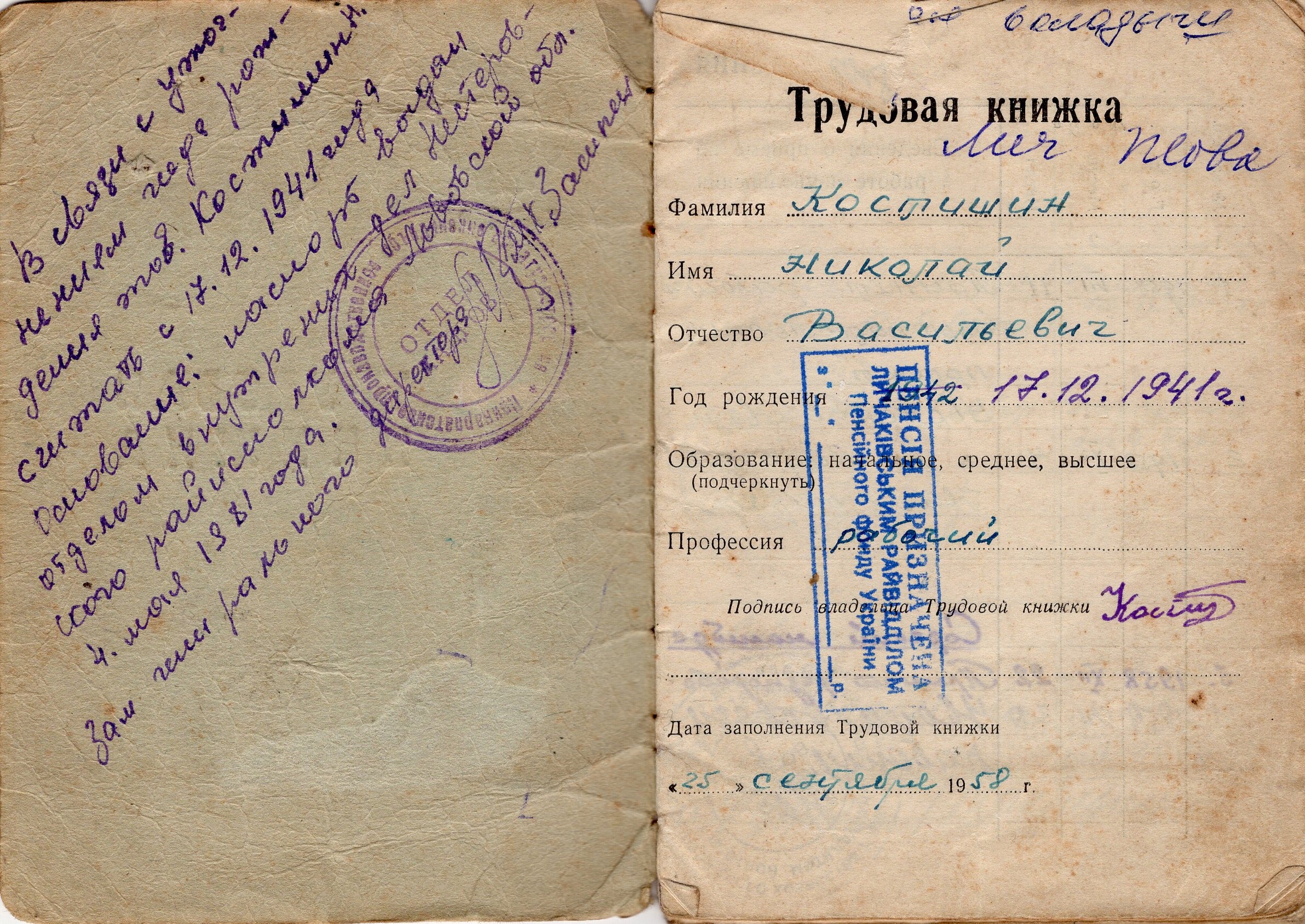Трудова книжка на пам‘ять про Сибір